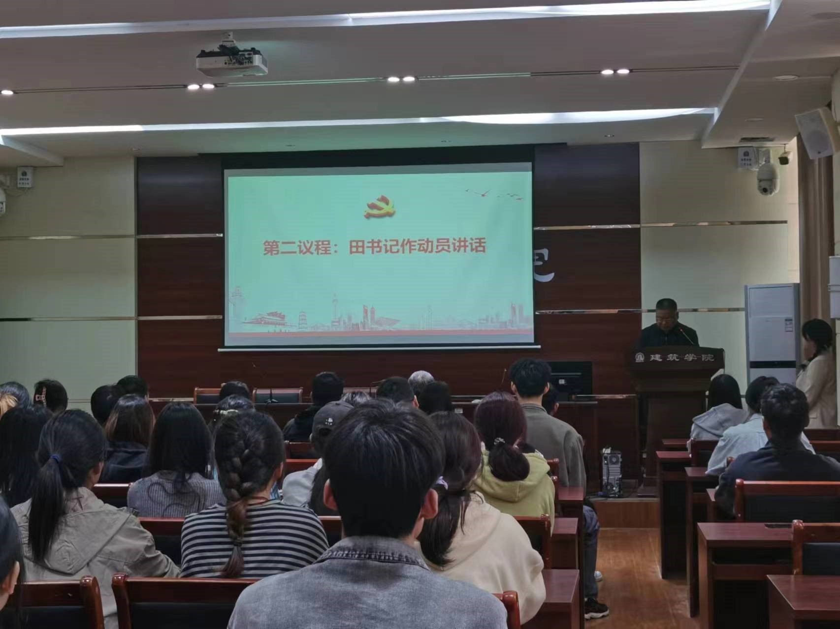 本网讯 (记者/牛思璇)4月7日下午,太阳成集团tyc33455第二十五期党课开课典礼暨党课培训第一讲在七教106举行。公司党委书记田光辉、党委副书记张辉、组织委员杨菲、相关员工党支部书记及本期入党积极分子参加。