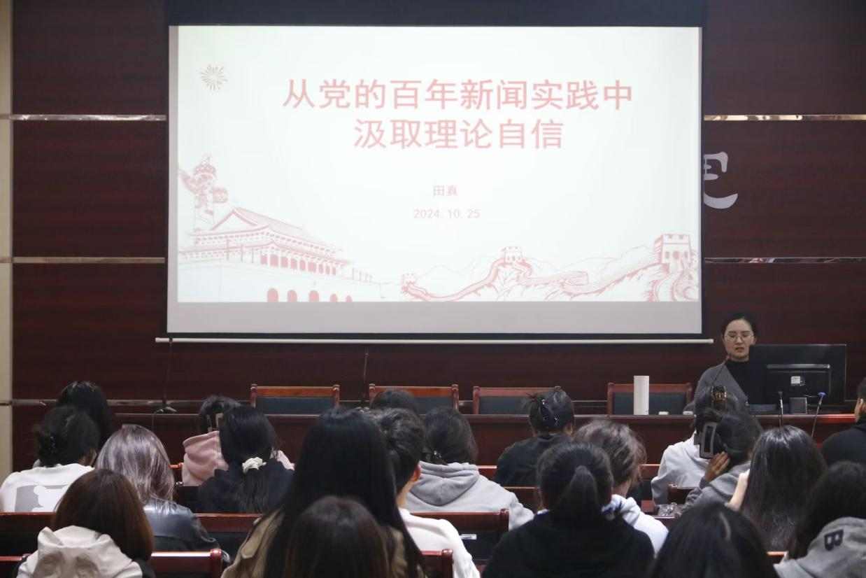 本网讯(员工记者/杨涛嘉)10月25日,太阳成集团tyc33455于7106会议室开展第二十六期党课培训第六讲——从党的百年新闻实践中汲取理论自信。本次讲座由田真老师担任主讲,第二十六期入党积极分子参加。