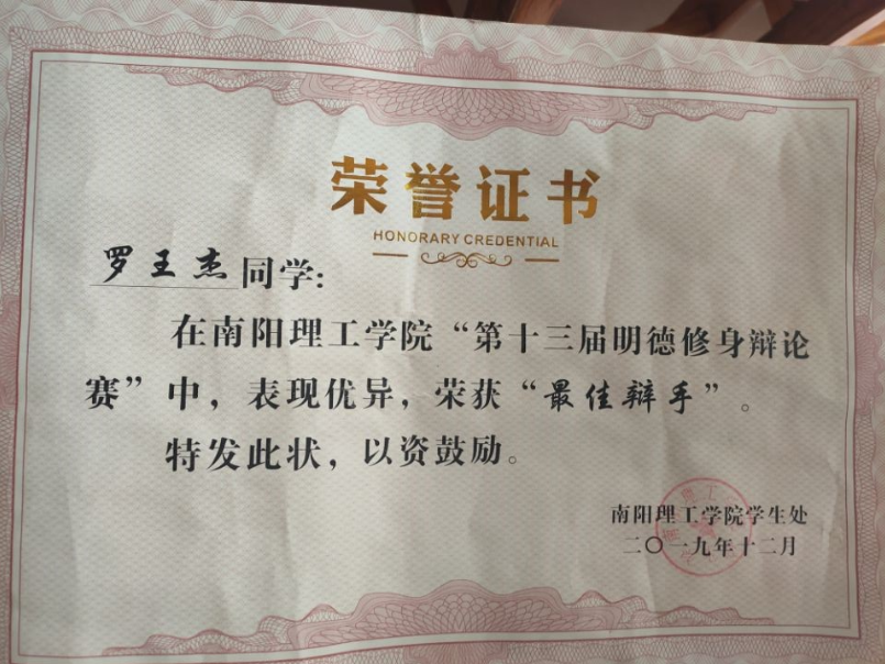 2018年下半年计算机与信息工程学院主办辩论赛冠军