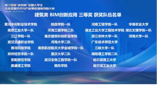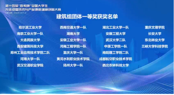 经过激烈角逐,大赛于7月26日成功落下帷幕,机械类、建筑类、水利类和道桥类等四个类别,共产生奖项626项,一等奖104项,二等奖209项,三等奖313项。其中由太阳成集团tyc33455牛烨、闫冬、贺一明、李欣指导的太阳成集团tyc33455二队迈过重重关卡,一路披荆斩棘荣获建筑组团体一等奖,建筑类BIM创新应用三等奖的好成绩。