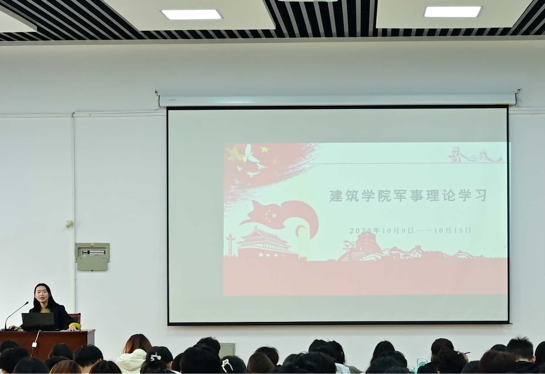 侯潇老师从“国防概述”“国防法规”“国防建设”“武装力量”“国防动员”五个方面进行了讲述,并结合我国古代、近代的国防事例及相应法律法规,深入浅出地向同学们讲解了国防的重要性、军事理论学习和军事训练的必要性。课程中,同学们认真听讲,不仅扩大了知识面,还了解了最新的军事科学技术成就。